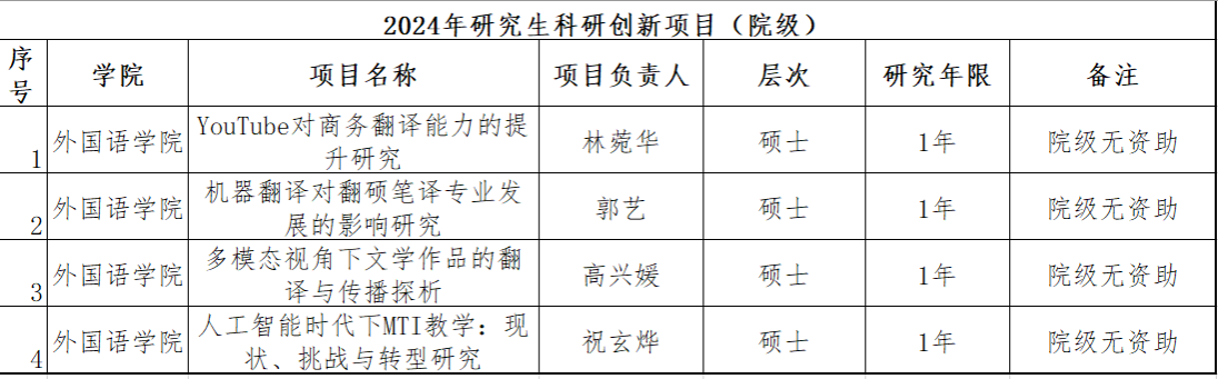 经公司评审并讨论研究,立以下项目为研究生科研创新项目(院级、无资助)。