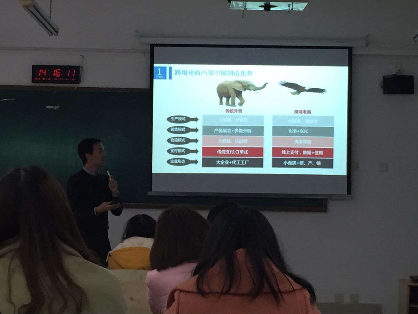 U仕联盟的顾经理从互联网+的角度对电子商务的现状和发展进一步深入展开分析,用全球的视角分析了电子商务的现状及潜力,及跨境电商人才的就业前景,并提出了期望,希望同学们能做电商时代的见证者和获益者。同学们对电子商务的认知在顾经理对跨境电子商务的基本运营流程介绍后进一步深化,在他的讲解中还了解到跨境电商人才的巨大缺口与机遇。