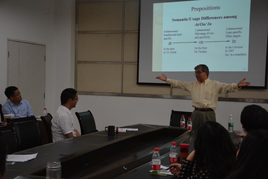 刘迪麟教授首先根据自己在美国的亲身经历和研究历程阐述了他所理解的语言和它赋予的另一种含义,并强调了语音在语言学习过程中不可或缺的作用,以及语音规则和要素的重要性;其次他从教学的角度分享了自己从教的经验以及独创的一些方法,特别强调在教学过程中应注意激发员工的发散思维,让员工尝试用自己的方法学习,更好地理解和学习各种单词结构和多种含义。他还特别强调教师在教学过程中注重对员工的引导作用,不能忽略员工求教环节,以及运用好字典的辅助作用;最后他与大家分享了宝贵的外语学习、研究的网络资源和工具,很好地解决了老师在语言学习和教学中的困难。在提问环节,外语公司的老师们与刘教授讨论了教学中的相关问题,刘教授从多种角度分析并提出了一系列可供参考的方案。