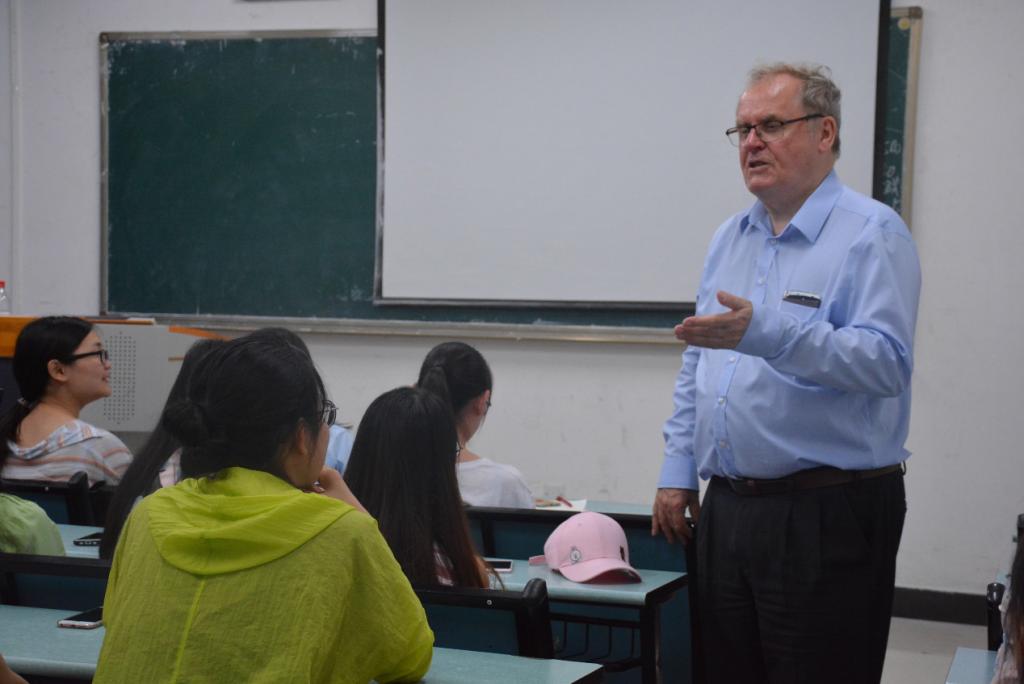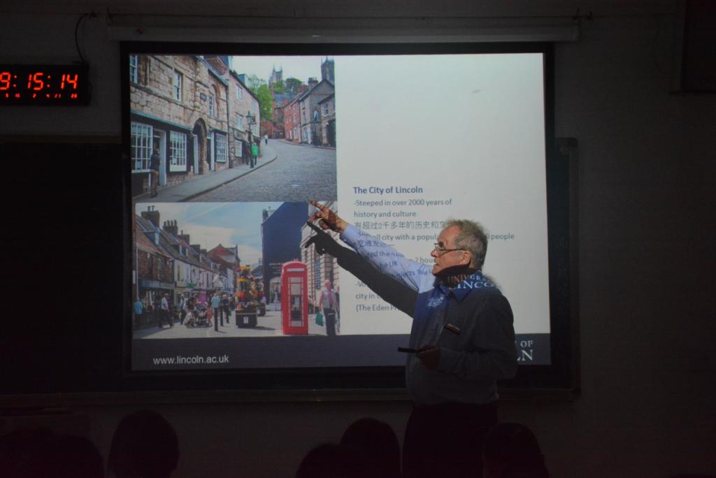 Ian Barnes教授作为本次座谈会的主讲人,在开场时表达了对重庆这座魅力火辣之城的由衷的喜爱。他表示,在中国的经济的迅猛发展与国际地位的迅速提高的背景之下,中国城市化的发展速度令人震惊,与他上次到来相比之下,重庆变得越来越有国际都市的模样,重庆人民的生活条件也得到了明显的改善,加上重庆麻辣鲜香的食物与人民似火的热情,他已经完全爱上了这座城市。紧接着,他向我们介绍了英国林肯这座城市,一座位于英国东南部的静谧小城。他说,尽管林肯没有重庆如此源远流长的历史,尽管林肯也没有重庆如此庞大的城市圈与人口,但林肯在历史中沉淀下来的文化底蕴却是挥之不去的。林肯大学就是如此,一所拥有着丰厚文化底蕴的大学,被誉为英国最现代化和最吸引人的校园之一,两次进入英国大学排名前十。林肯大学有来自50多个不同国家的2000多名职工,是一所国际知名的研究型大学。随后教授向同学们展示了林肯大学的风景照,令人向往。Ian Barnes教授表示,林肯大学与工商大学共同承办合作项目,秉承互利共赢的态度为员工提供一流的教学与丰富的生活体验。座谈会的最后,同学们纷纷发言表达自己的困惑,Ian Barnes教授均耐心地为其解答。随后本次座谈会在副经理周琳的致辞下圆满结束。