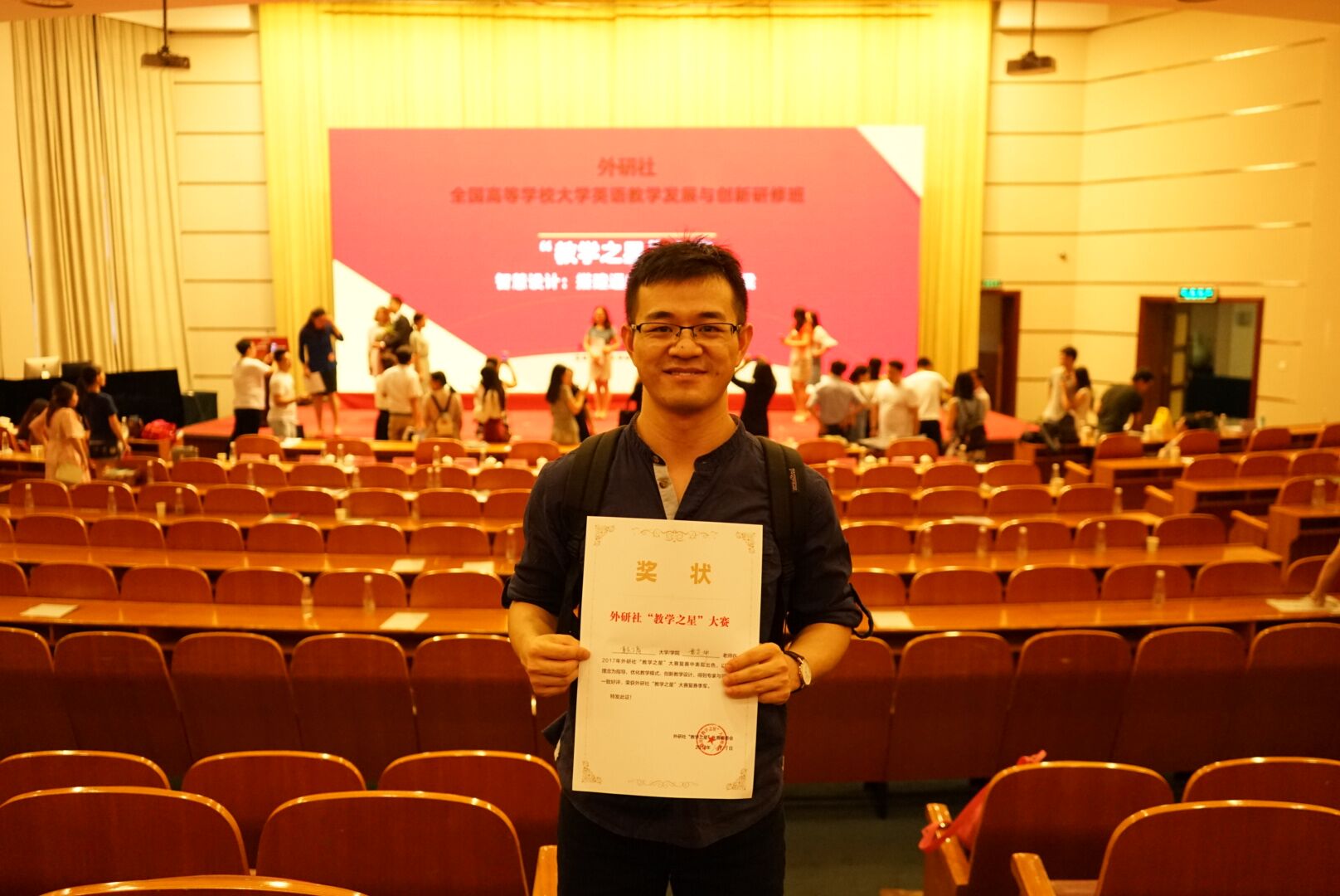 在高手云集的外研社“教学之星”大赛复赛中,雷定坤老师展现了扎实的语言功底、科学的教学理念、精心的课程设计、富有激情的精彩演示,获得了来自全国各高校专家及同仁的高度认同和赞扬,展现了公司团队队伍的实力与风彩。