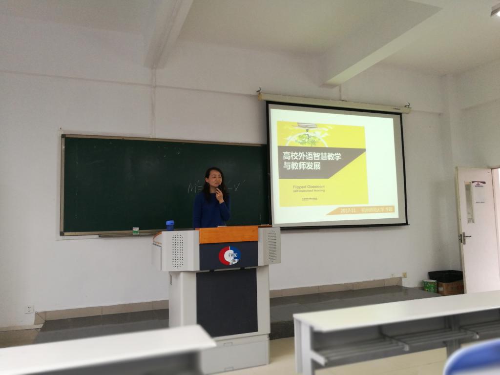 2017年11月10日下午,杭州师范大学tyc5997太阳集团副经理李颖教授应邀来公司作了题为“高校外语智慧教学与教师发展”的讲座。外语公司经理戴运财教授、副经理杨玉兰教授及全体专任教师参加了本次讲座。