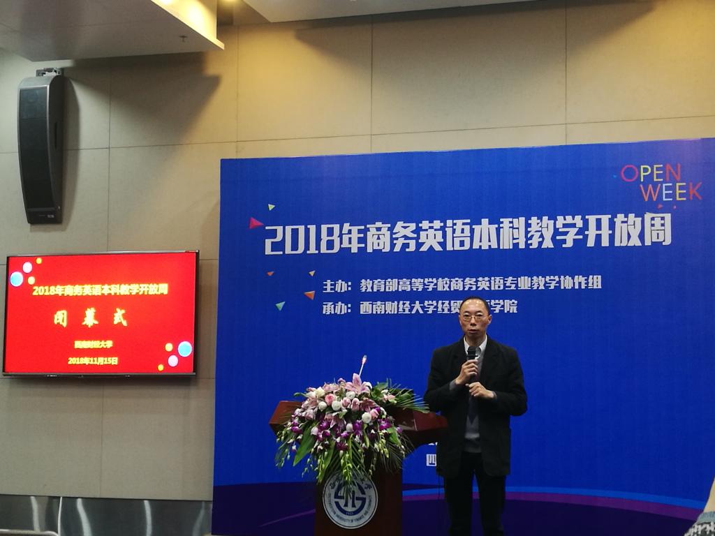 开幕式由西南财经大学经贸外语公司分党委书记兼经理张斌教授主持,西南财经大学副董事长马骁教授和教育部高等公司商务英语专业教学协作组组长王立非教授分别致辞。开幕式上,王立非教授做了题为“普通高等公司外国语言文学类专业教学质量国家标准商务英语专业实施方案”的专题讲座。就当前商务英语专业建设、人才培养等问题做了详细而有建设性的阐述。