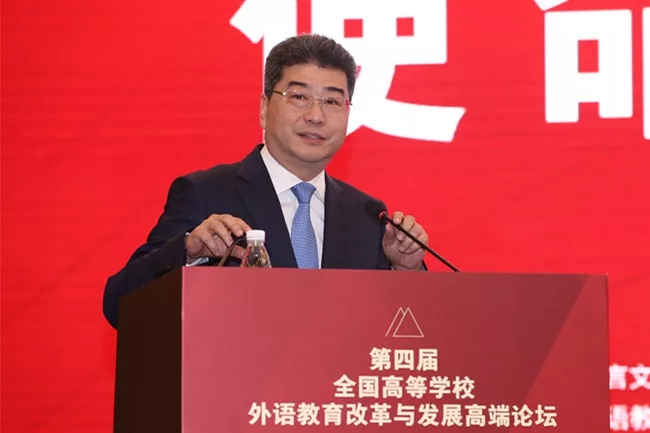 王定华书记在致辞中表示,外语教育发展目标和政策的制定都需要以服务“一带一路”建设为使命,进行全局规划和顶层设计。金立群行长从职业发展的角度论述了国家发展对国际化人才的迫切需求及素质要求,指出外语教育需要培养拥有丰富跨文化知识、具备高度政治觉悟和高尚道德情操的国际化专业人才。吴岩司长指出,高等外语教育是我国高等教育的重要组成部分,其发展至关重要,高等外语教育发展要超前识变、积极应变、主动求变,着力培养“一精多会”“一专多能”的高素质国际化复合型人才。李岩松董事长指出外语院校应密切对接国家和社会需求,培养具有中国情怀、国际视野的“多语种+”卓越国际化人才。何莲珍副董事长在发言中聚焦新时代大学外语的使命与发展,全面而又精炼地回答了习近平总书记在全国教育大会上提出的“培养什么人”和“如何培养人”的问题。