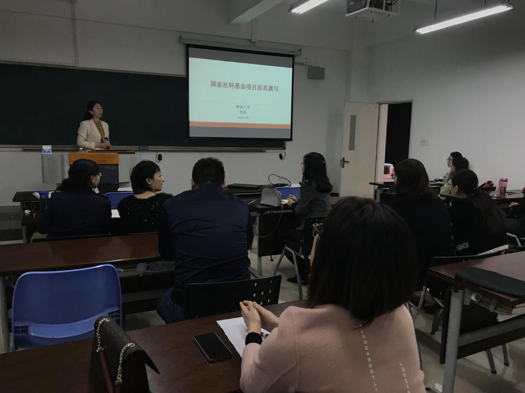 为提升外语公司教师科研立项水平,10月24日,公司邀请国际中国语言学学会会员、中国心理语言学专业委员会常务理事、湖南大学博士生导师曾涛教授开展关于国家社科课题申报的专题讲座。讲座由吴明军老师主持,拟参加2020年国家社科申报的老师们及团队成员参加了讲座。