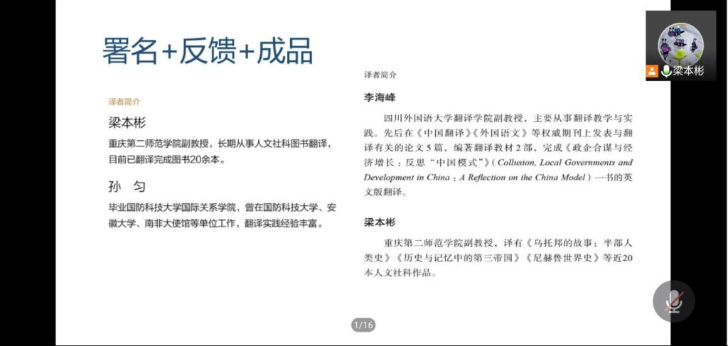 10月29日下午,公司成功举办“图书翻译技术理论与实践”线上讲座,主讲人为重庆第二师范公司梁本彬副教授。讲座由tyc5997太阳集团经理周琳主持,公司百余名师生聆听了讲座。