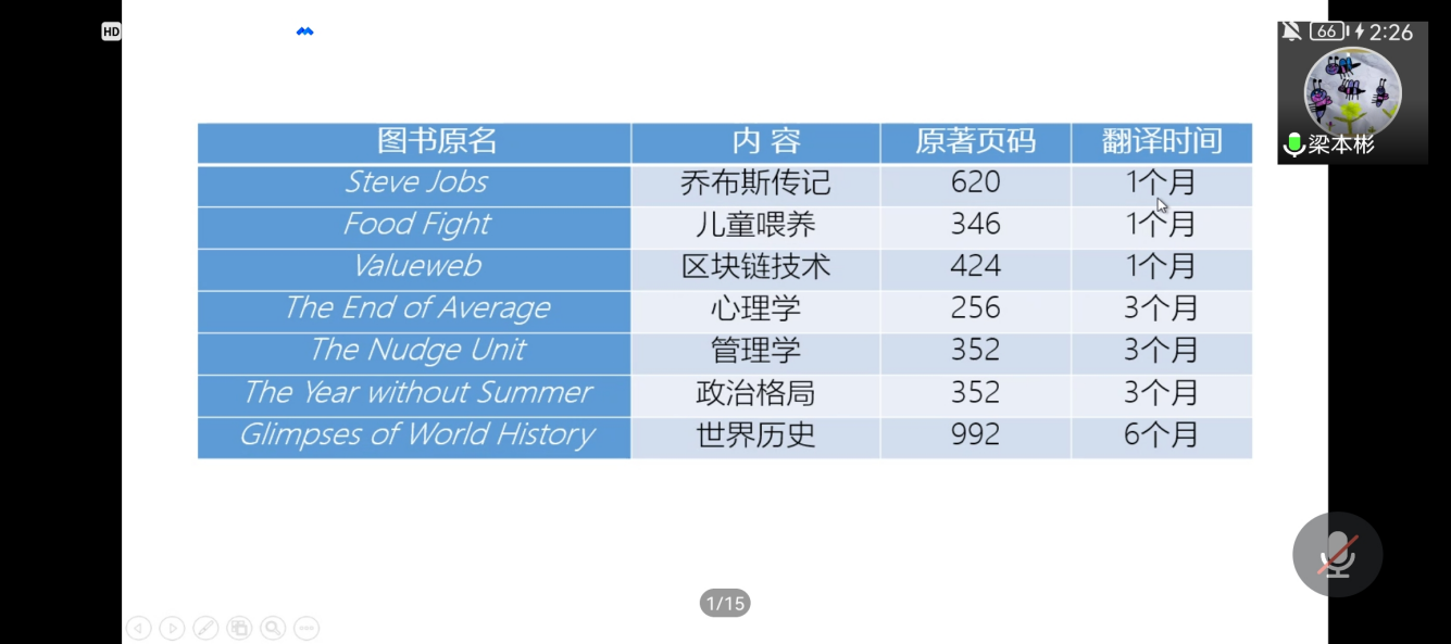 梁老师结合其在图书翻译学习、教学过程中积累的经验,由浅入深,分别从图书翻译项目特征、管理内容、项目案例和挑战与应对等四个方面展开分享。