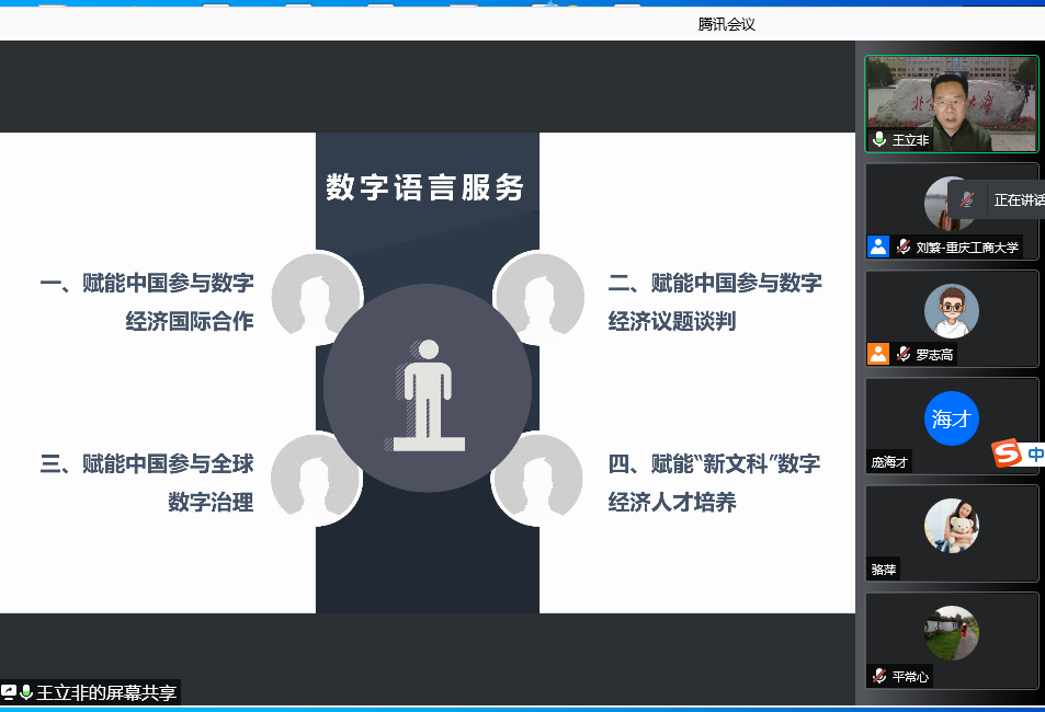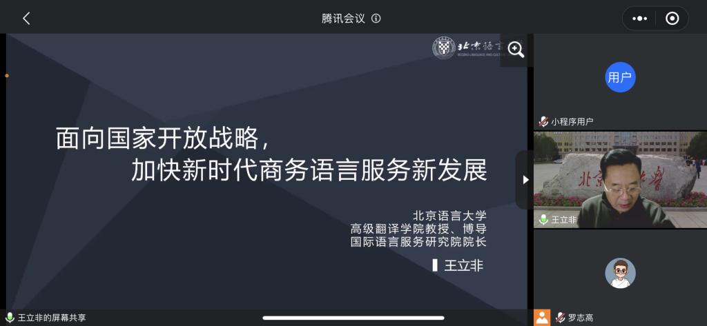 应公司邀请,北京语言大学王立非教授于2021年12月10日下午为全院教师进行了一场题为《面向国家开放战略,加快新时代商务语言服务高质量发展》的线上讲座。