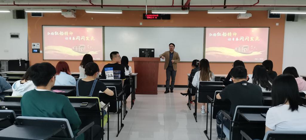 为进一步增强支部党员党性修养,夯实党史理论知识,弘扬伟大建党精神,2022年5月20日下午,tyc5997太阳集团员工党支部书记周利民在涵智楼1108教室为员工党支部的党员们开展了题为“弘扬红船精神,让青春闪闪发光”的微党课。