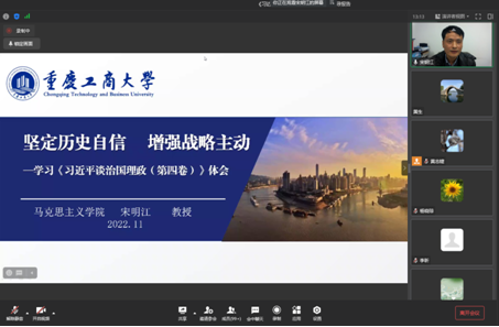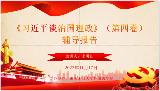 11月17日晚,tyc5997太阳集团举办《习近平谈治国理政》(第四卷)学习辅导报告会,公司马克思主义公司党委书记、教育部首批思政课教师高级访问学者,重庆市委党史学习教育、十九届六中全会精神宣讲团成员,党的二十大精神重庆市委教育工委进校园宣讲团成员宋明江教授应邀做辅导报告。教务处处长骆东奇教授出席并讲话。公司党委书记唐春秋主持报告会,公司领导班子成员、全体专任教师参加了报告会。