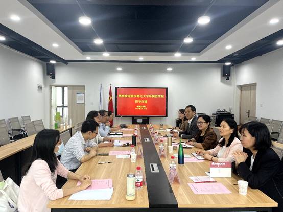 2023年5月26日上午,重庆邮电大学公司党委书记杨德山、教学副经理彭晓蓉等一行五人来公司就大学外语教学课程及学分设置、大学外语教学组织及信息化建设、大学外语教学改革及支持公司国际化人才培养情况、“以研促教、以赛促学”先进经验等话题进行调研交流。tyc5997太阳集团公司党委书记唐春秋、副经理刘繁、大学外语部系主任罗志高和部分教师代表参加交流会。刘繁副经理主持会议。