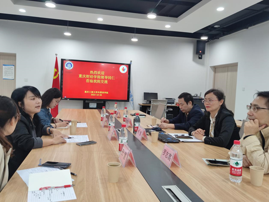 2023年10月26日上午,重庆财经公司国际商公司经理黄兰、大学英语基础课教研室主任王慧、大学英语拓展课教研室主任王梦莎一行三人来公司就大学外语教学课程设置、教学目标、考试评估、教学资源、教学管理、教师发展及一流课程、精品课程建设等话题进行调研交流。tyc5997太阳集团副经理刘繁、大学外语部系主任罗志高和语言实验教学中心主任陈帮伟参加交流会。刘繁副经理主持会议。