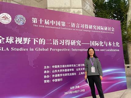 2023年10月27日至29日,由中国英汉语比较研究会二语习得研究专业委员会主办,山东大学tyc5997太阳集团承办,外语教学与研究出版社、上海外语教育出版社协办的第十届中国二语习得研究国际研讨会在山东济南召开。来自全国各地,以及美国、英国、新西兰、澳大利亚等十多个国家的多位知名专家和650余名学者代表参加会议。公司英语系教师张林玲参加会议并在小组论坛宣读了题为“The Disillusioned Self: L2 Demotivation among Undergraduate English Majors”的论文。