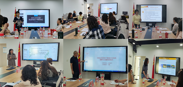 比赛过程中,老师们结合各自的课程、专业,分析员工学情,注重课程思政,做到线上线下混合,体现技术赋能教学。如岳宜阳老师结合法语“三进”课程《公平公正的社会》一章,让同学们了解我国国家宪法日、《民法》的颁布背景,与同学们一起回顾了法国《拿破仑法典》颁布背景及影响。岳老师请同学们结合实际案例梳理所涉及法条的进步历程,让同学们学习我国中国特色社会主义法治建设。周茜老师准确把握了课文阅读理解中的难点,采取有效的阅读方法帮助员工分析文章结构,厘清作者的写作脉络;仔细讲解课文中的难句,扫除阅读理解的障碍。吴庸老师分享了比较认知视域下对文本的理解与对翻译的制约,通过分析文本的认知特征、辖域,引导员工正确理解文本及辖域对翻译的制约等,通过大量鲜活的中外事例,教会员工在翻译中知其然,并知其所以然,培养员工的文化自信,讲好中国故事。韩媛媛老师在比赛中运用现代多媒体技术、任务式教学法设计教学内容,同时将所教授课程与思政相结合,力求将积极、进取的价值观同专业知识一起传授给员工。在教学过程中让员工了解碳达峰、碳中和等知识,在教学设计中注重员工对课文理解、把握新能源的特点、结合图表作文写作技巧,补充相关句型和词汇。