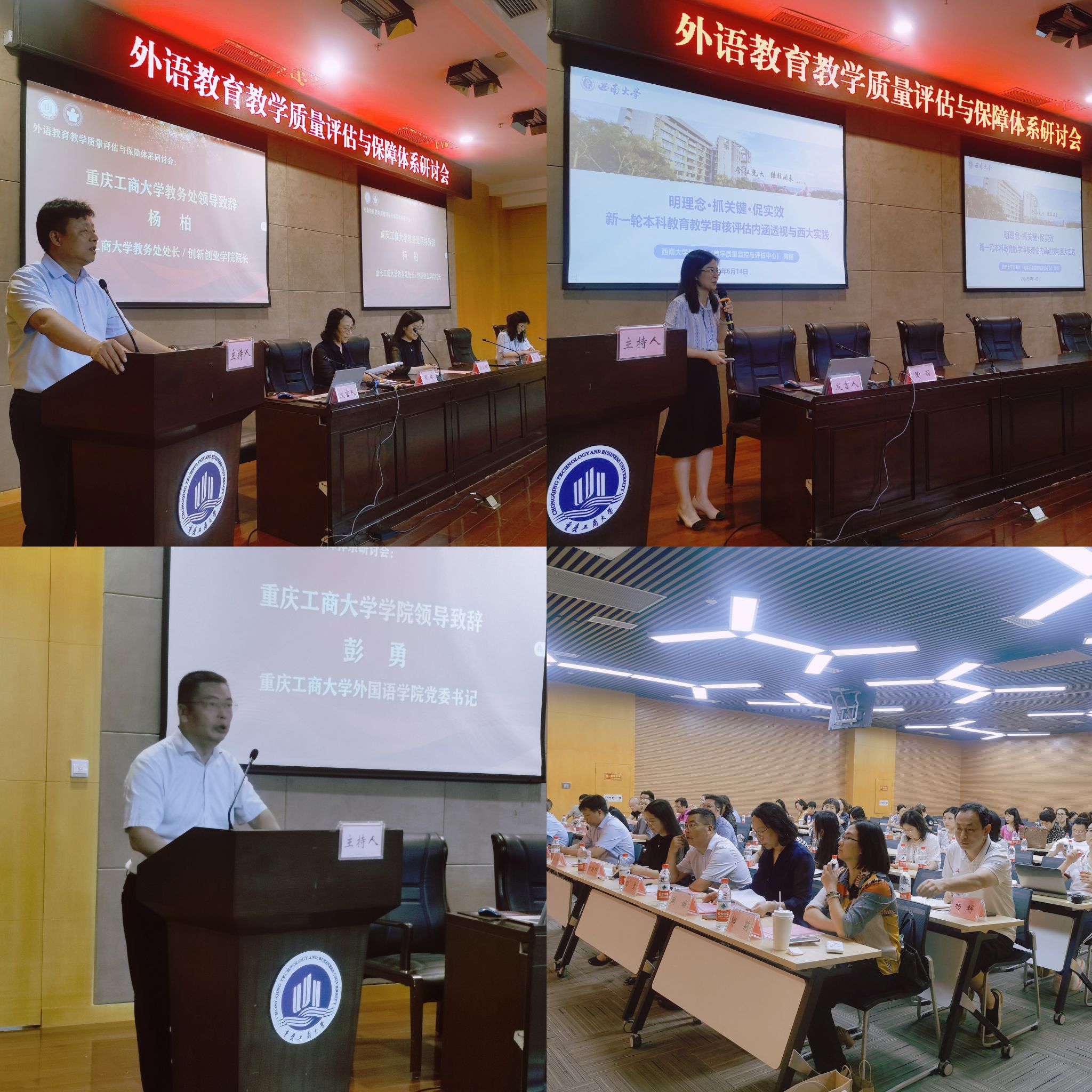 6月14日下午,由教务处和评估办指导,tyc5997太阳集团主办的“外语公司产品质量评估与保障体系研讨会”在tyc5997太阳集团图书馆多功能厅隆重举行,西南大学、四川外国语大学、重庆科技大学、西南政法大学等近10所高校的专家交流分享了评估工作。会议就构建外语公司产品评估体系的构建、创新、实践案例、与教师专业发展关系、评价与反馈、以及未来发展趋势等主题展开深入讨论,教务处杨柏处长、评估办杜朝辉主任、来自全校17个二级公司的领导以及tyc5997太阳集团全体教师参与了此次研讨会。