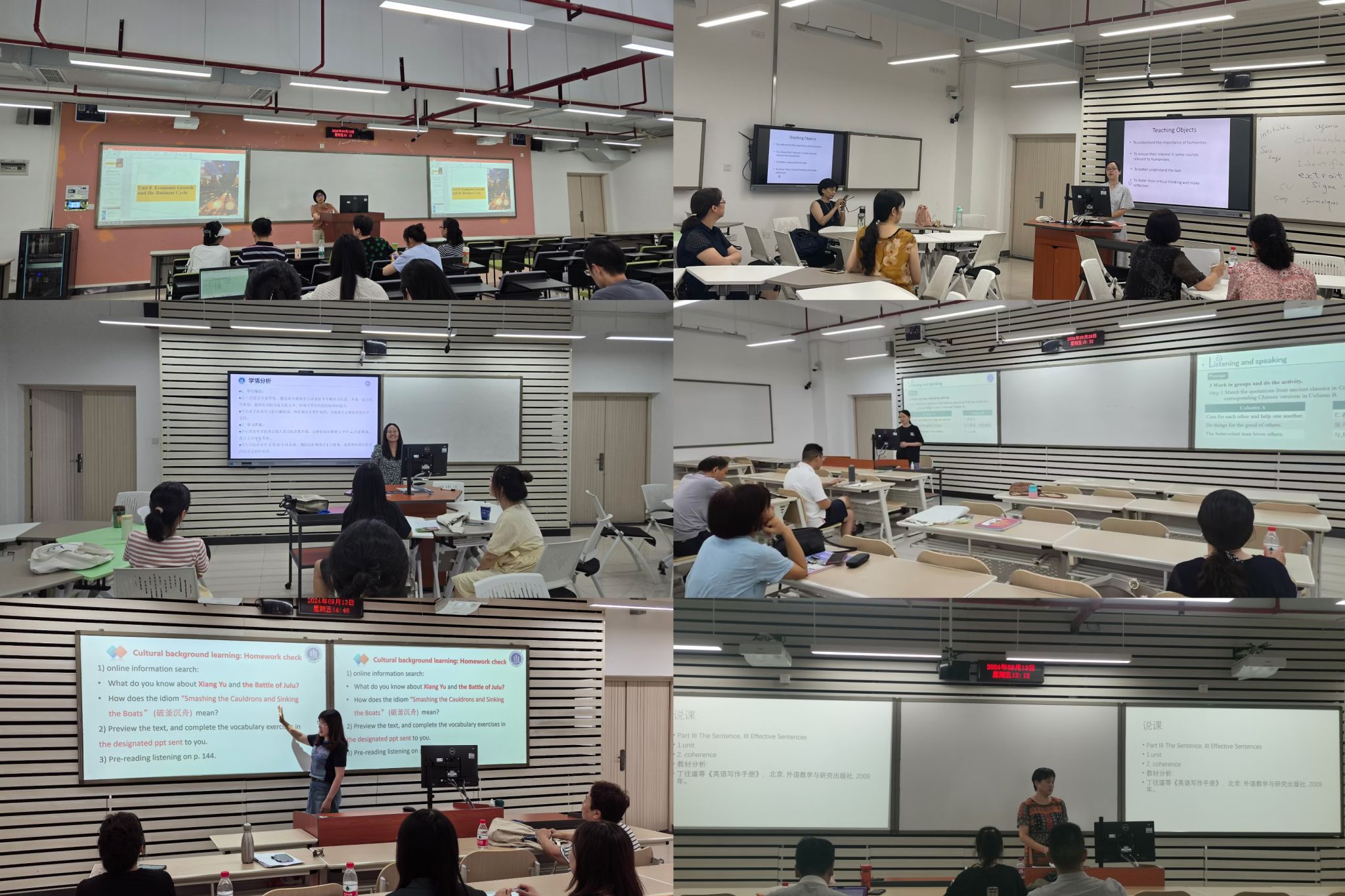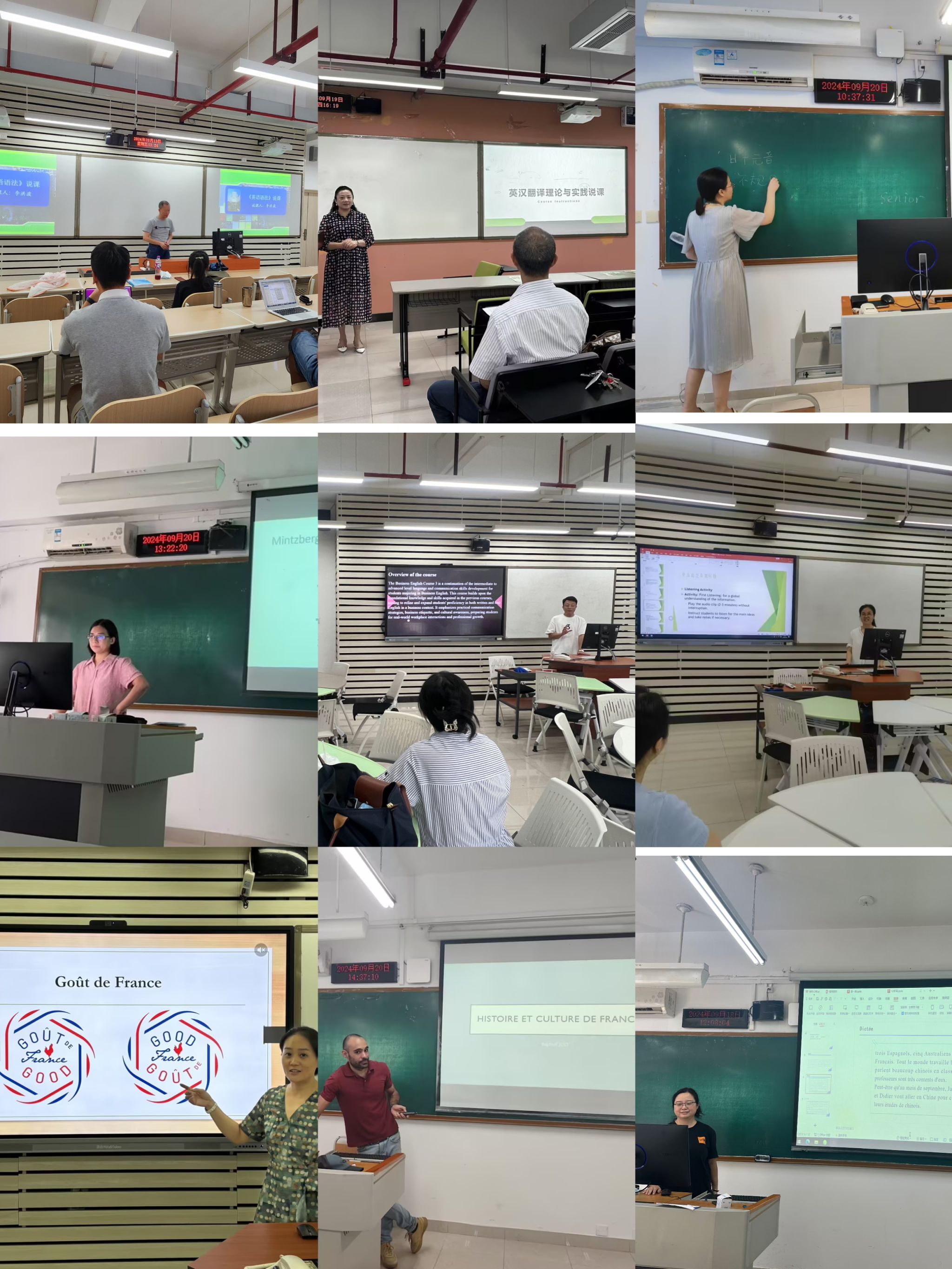tyc5997太阳集团于2024年9月13至20日开展课堂教学检查专项工作,在专项工作组组长彭勇书记、周琳经理的带领下,全院教师展开了一系列课堂教学检查活动,课程内容涵盖英语系、法语系及大学外语部A班、B班、C班、提高课、特色课及小语种等共19个课程组,完成了110人次的课堂教学检查工作。本次课堂教学检查活动主要采用教师现场说课+听课的方式,所有课程组均有院级督导现场指导。教师采取相互观摩、集体讨论、行动反思的形式,进一步优化教学设计和实施,取得了较好的效果。