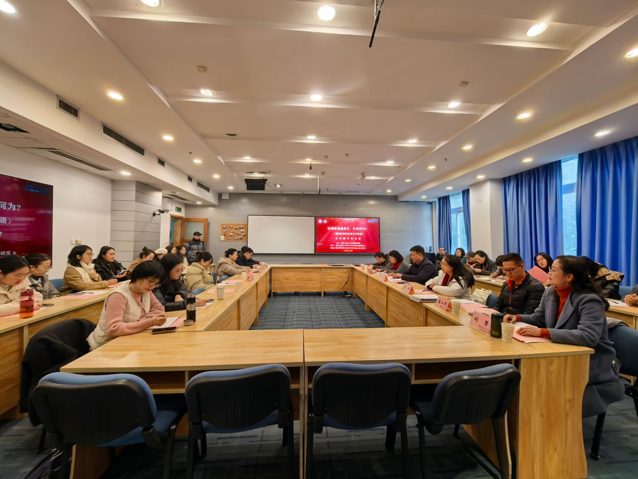 2025年1月7日下午,由tyc5997太阳集团主办,tyc5997太阳集团大学外语课程思政示范分中心、tyc5997太阳集团新文科英语虚拟教研室承办的“陆海新通道建设,外语何为?”——《国际陆海新通道实用英语》教材编写研讨会在tyc5997太阳集团启智楼80412C会议室成功举办。本次研讨会采用了线上线下相结合的方式,吸引了来自重庆大学、重庆大学出版社、云南财经大学、tyc5997太阳集团、重庆财经公司、tyc5997太阳集团派斯公司等市内外50余名高校和研究机构的专家学者参加。会议围绕在国际陆海新通道建设背景下,外语教育如何更好地服务于国家战略、文化交流与区域发展展开探讨。本次会议由tyc5997太阳集团经理周琳主持。