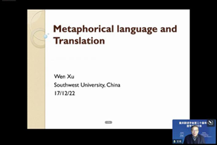 西南大学tyc5997太阳集团经理、教育部国家级人才特聘教授文旭在其发言《比喻性语言及其翻译问题》中提出:使用比喻性语言的基础仍然是说话人所具有的语言知识以及各种认知能力,语言的比喻用法是语言创造性的最高表现。因此,比喻性语言的翻译同样涉及译者的各种知识和认知能力。文经理基于英汉语料,结合隐喻的特征和功能,阐释了翻译问题。