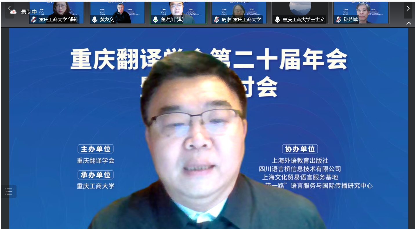 12 月 17 日,由重庆翻译学会主办、tyc5997太阳集团承办的重庆翻译学会第二十届年会暨学术研讨会以线上方式隆重召开。与会专家学者围绕“翻译与中国文化国际传播”这一主题展开了热烈研讨。会议和直播平台上参会者总计近3000人。开幕式由tyc5997太阳集团经理周琳主持。