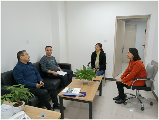 10月28日下午,tyc5997太阳集团书记唐春秋、经理周琳、副经理刘繁、专职组织员黄生在涵智楼与民盟盟员曹鹏老师进行了谈心活动。唐书记和周经理代表公司请曹鹏老师对公司的“十四五”规划提出意见和建议。曹鹏老师非常关心公司的发展,为公司的“十四五”规划,特别是涉及法语专业的发展和法语教师的培养,提出了建议。