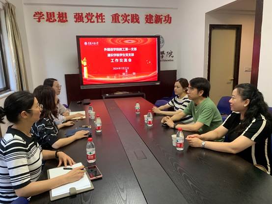 2024年5月22日中午,公司党委教工第一支部书记周渝、党员教师奉霞与周沫老师前往江北校区,与通识公司党总支员工党支部开展了工作交流会,通识公司党总支副书记况源、辅导员周涛老师和郑志欣老师参加会议。