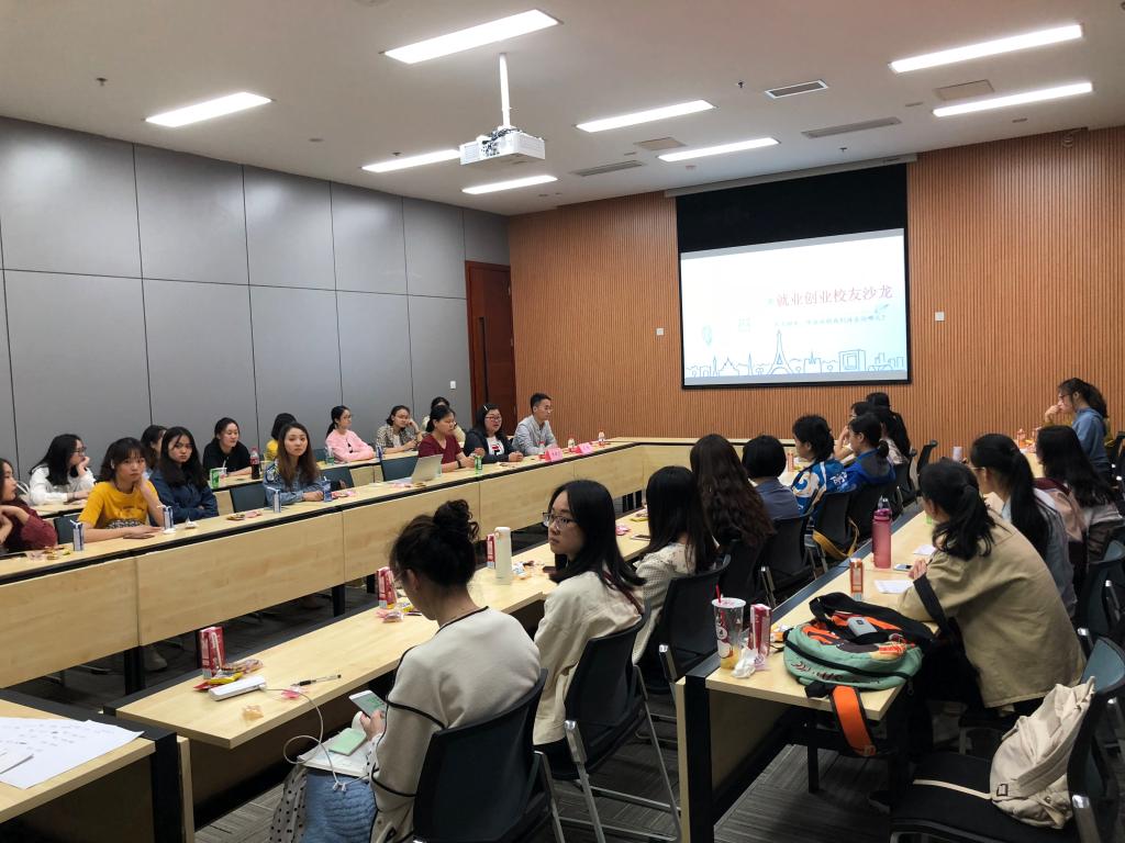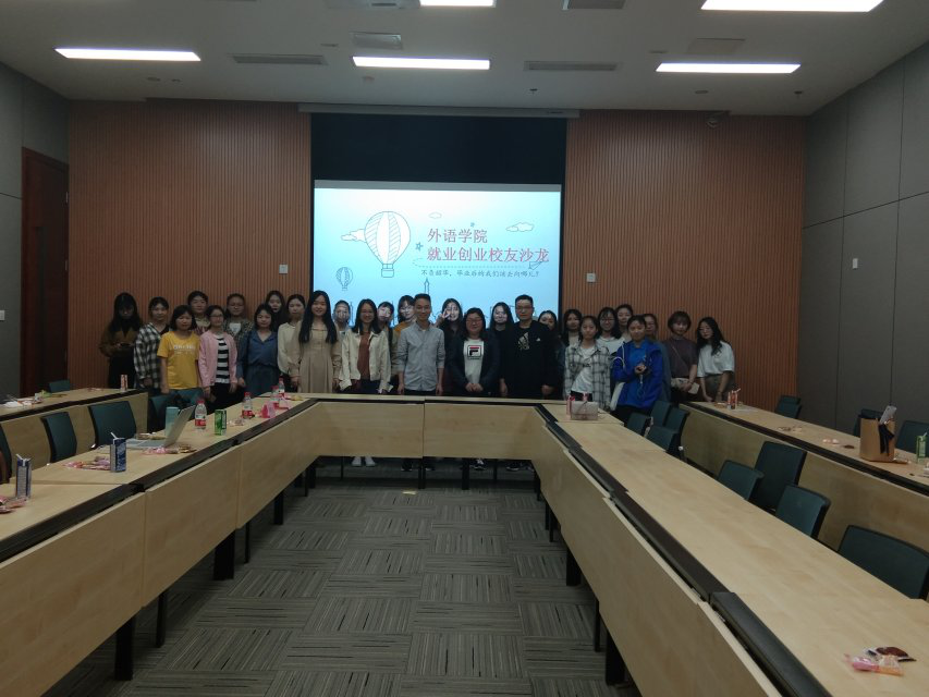 2019年4月11日晚上,由外语公司党员服务站主办的外语公司就业创业员工沙龙分享会在新图书馆会议中心第三会议室成功举行。本次分享会邀请到了外语公司英语系12届员工乔明月、14届英语系员工文瑜参与分享,外语公司学团办主任吴欢欢老师、辅导员丁亮老师,以及外语公司16、17、18级共计40余名员工参加了本次分享会。