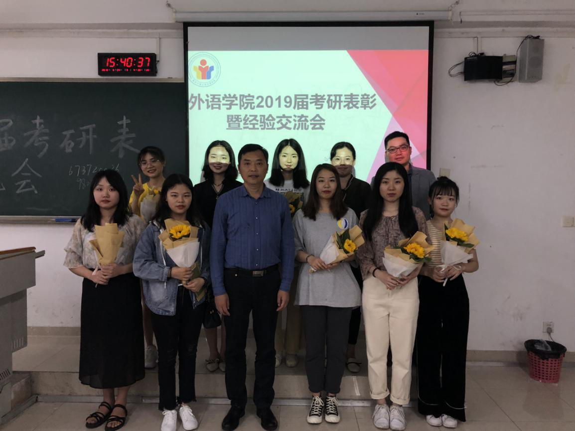 2019年5月24日下午,外语公司2019届考研表彰暨经验交流会在博智楼07105成功举办。外语公司党总支书记陈晓东、外语公司党总支副书记程亚、外语公司2019届辅导员老师丁亮、外语公司2019届考研员工代表以及来自外语公司16、17、18级共计100余名员工参加了此次表彰交流会。