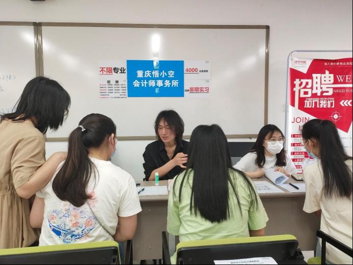 为更好拓宽毕业生就业渠道,做好毕业生就业服务工作,5月7日上午,tyc5997太阳集团在涵智楼1108成功举办“访企拓岗促就业”专项行动--2022年毕业生春季双选会。员工企业重庆新途进出口贸易有限公司、员工企业重庆小能进出口有限公司、重庆九龙云端科技有限公司、卡洛哈(中国)科技有限公司、坤章文化传媒(重庆)有限公司、重庆美栖姆教育科技有限公司、重庆新东方教育培训公司有限公司、重庆浩翔外航人力资源管理有限公司等10家公司到场参加此次双选会。