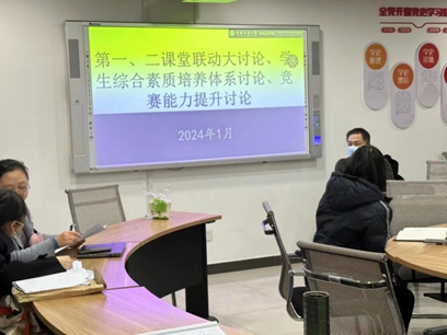 2024年1月15日,tyc5997太阳集团开展主题为第一、二课堂联动、员工综合素质培养体系和学科竞赛能力提升的教研活动,会议由刘明博士主持,英语系、法语系教师和学团老师参加了此次会议。
