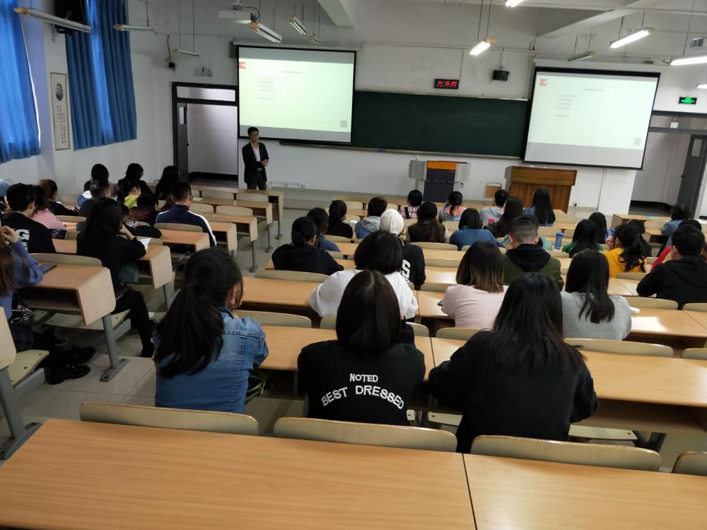 2018年10月12日星期五下午,由外语公司党员服务站主办的关于“求职技巧以及简历制作”讲座在博智楼07208教室成功举办。出席本次活动的嘉宾有重庆想想商务信息咨询有限公司CEO李想、外语公司英语系主任邹莉老师,外语公司15、16级全体员工参加了此次活动。