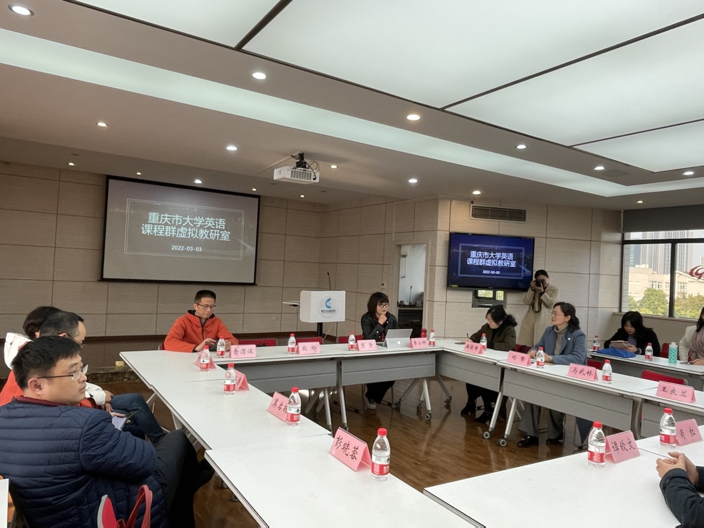 2022年3月3日下午,“重庆市大学外语课程群虚拟教研室”第一期线下研讨会在重庆大学tyc5997太阳集团501会议室举行。tyc5997太阳集团副经理刘繁和大学外语部陈丹杰、吴庸、董茜三位教师参加了会议。