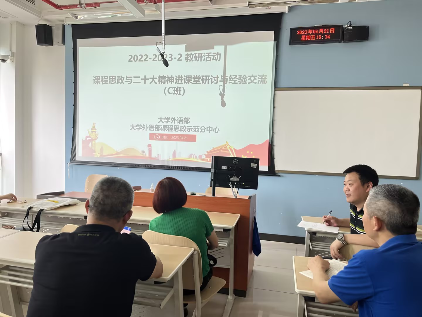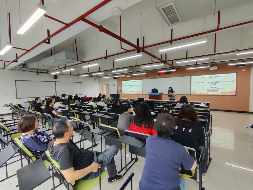 2023年4月21日下午,tyc5997太阳集团大学外语部开展了主题为“课程思政与二十大精神进课堂研讨与经验交流”的分组教研活动,AB班、PBL实验班和艺体班课程组分别在涵智楼1108室、1216室、1105室进行了交流与研讨。