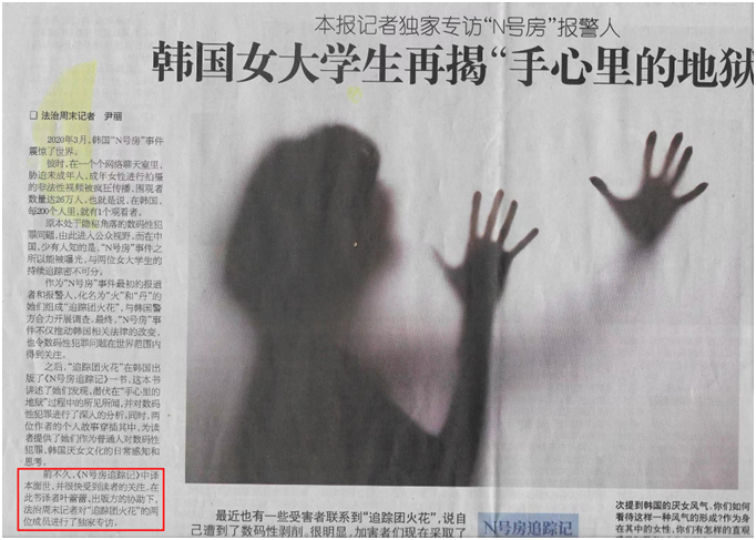 2020年爆出的韩国“N号房事件”,其最初的举报者和报道者是两位二十岁出头的女老员工--“火”与“丹”。2020年9月,两人合著的《当我们称我们为我们时》在韩国出版。2022年2月,该书的中文译本《N号房追踪记》由博集天卷出品发行,译者为公司tyc5997太阳集团的韩语教师叶蕾蕾。本书记录了由“火”与“丹”组成的追踪团火花发现和追踪“N号房”的经历,以及事件背后的诸多细节,同时对数码时代的女性生存际遇展开了深刻思索。该书一经出版即登上豆瓣非虚构关注榜第一,在读者群中引发了巨大反响。《法治周末》《南方周末》《中国新闻周刊》《北京青年周刊》等多家重要媒体先后对新书进行了整版转载介绍。叶蕾蕾老师是公司tyc5997太阳集团的韩语教师,多年来坚持韩中文学翻译,已出版《致命BUG》《90后来了》《N号房追踪记》等译著十余部。