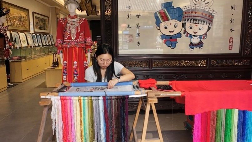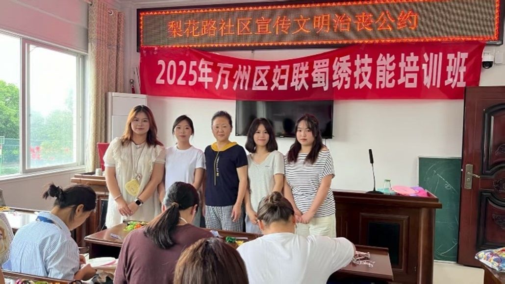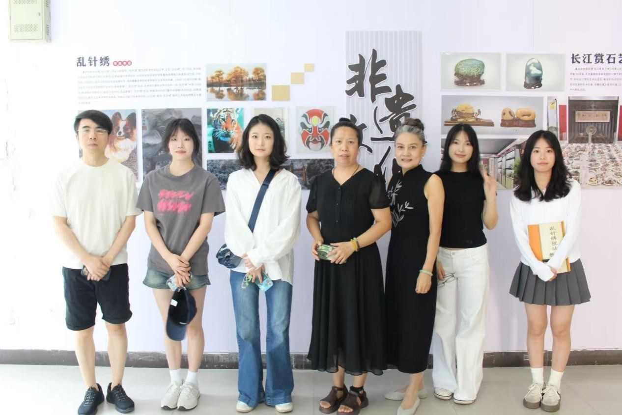 实践过程中,各小组在与非遗传承人的深度交流里,触摸文化根脉,涵养爱国情感。走进北碚布艺传承基地,传承人李月华的 “世家传承” 故事让学子们深受触动 —— 其母亲将缙云山、嘉陵江的地域风貌融入布艺设计,如今工作室不仅开设中小学兴趣班培育传承幼苗,更吸纳下岗职工实现再就业,让两百余年的布艺技艺成为助力民生的温暖载体。在彭水苗绣工坊,留守妇女指尖翻飞的针线,既是非遗技艺的延续,更是女性自力更生的生动写照;万州三峡绣社区培训班里,妇联成员专注学习的身影,展现出非遗在基层文化建设中的鲜活力量。这些场景让学子们深刻认识到,非遗不仅是技艺的沉淀,更是家国文化的鲜活载体,进一步坚定了用外语讲好中国非遗故事、传播中华文化的责任感与使命感。