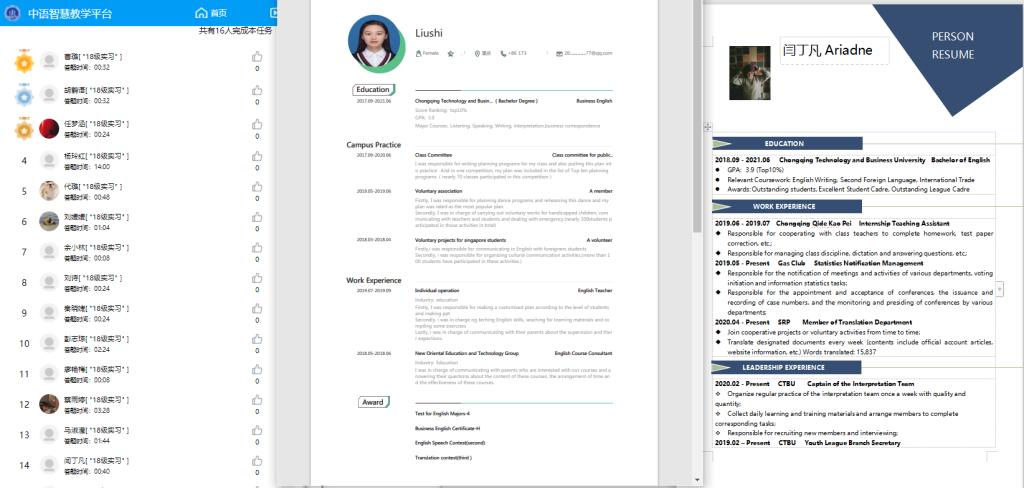 2020年11月-2021年2月,来自tyc5997太阳集团17级和18-20级的111名员工在邹莉、刘晓远、李小姝老师的带领下,分别参与了中语智汇科技(厦门)有限公司组织的线上毕业实习和寒假实习活动,员工来自包括英语、商务英语和法语在内的3个专业。