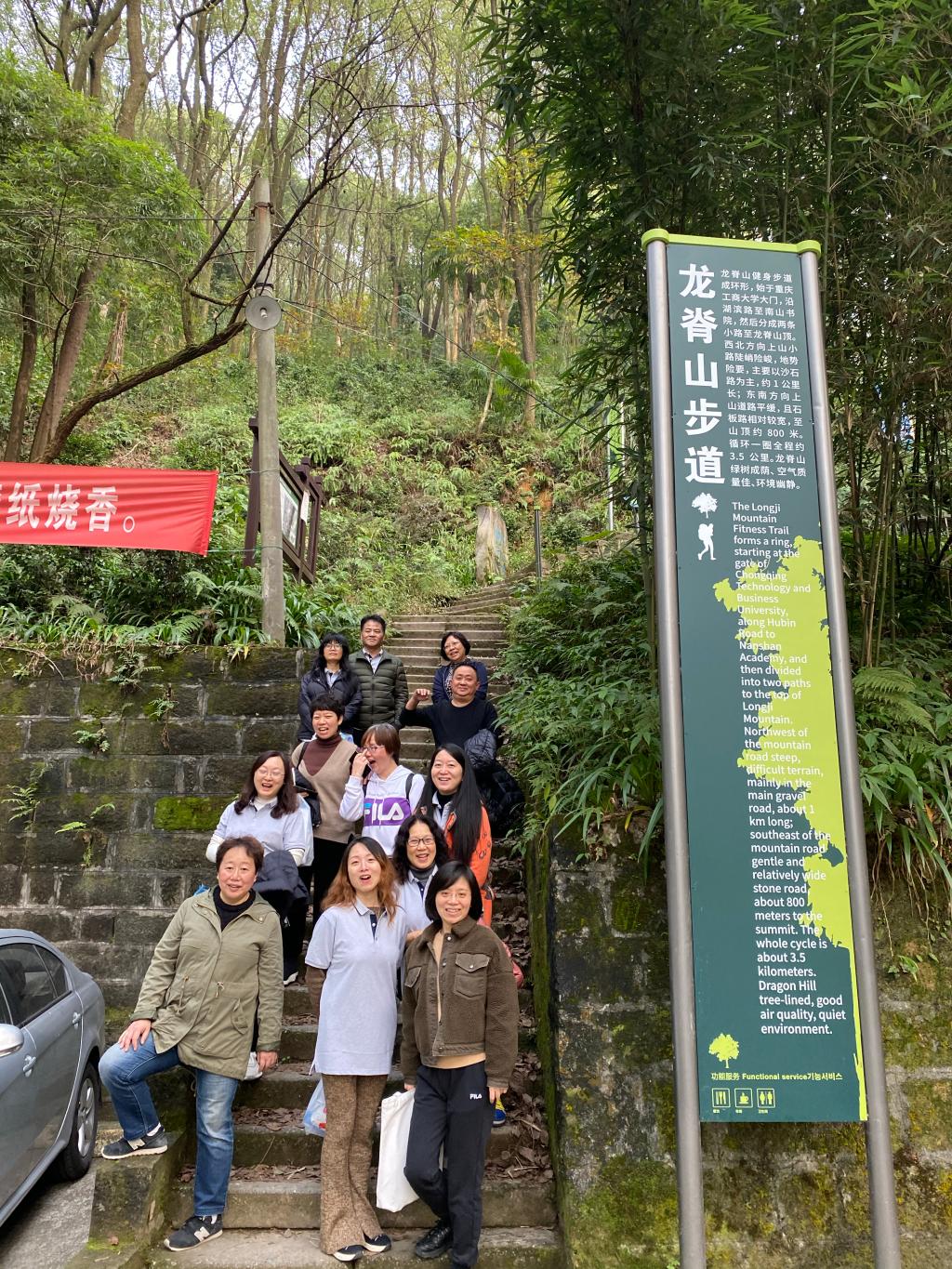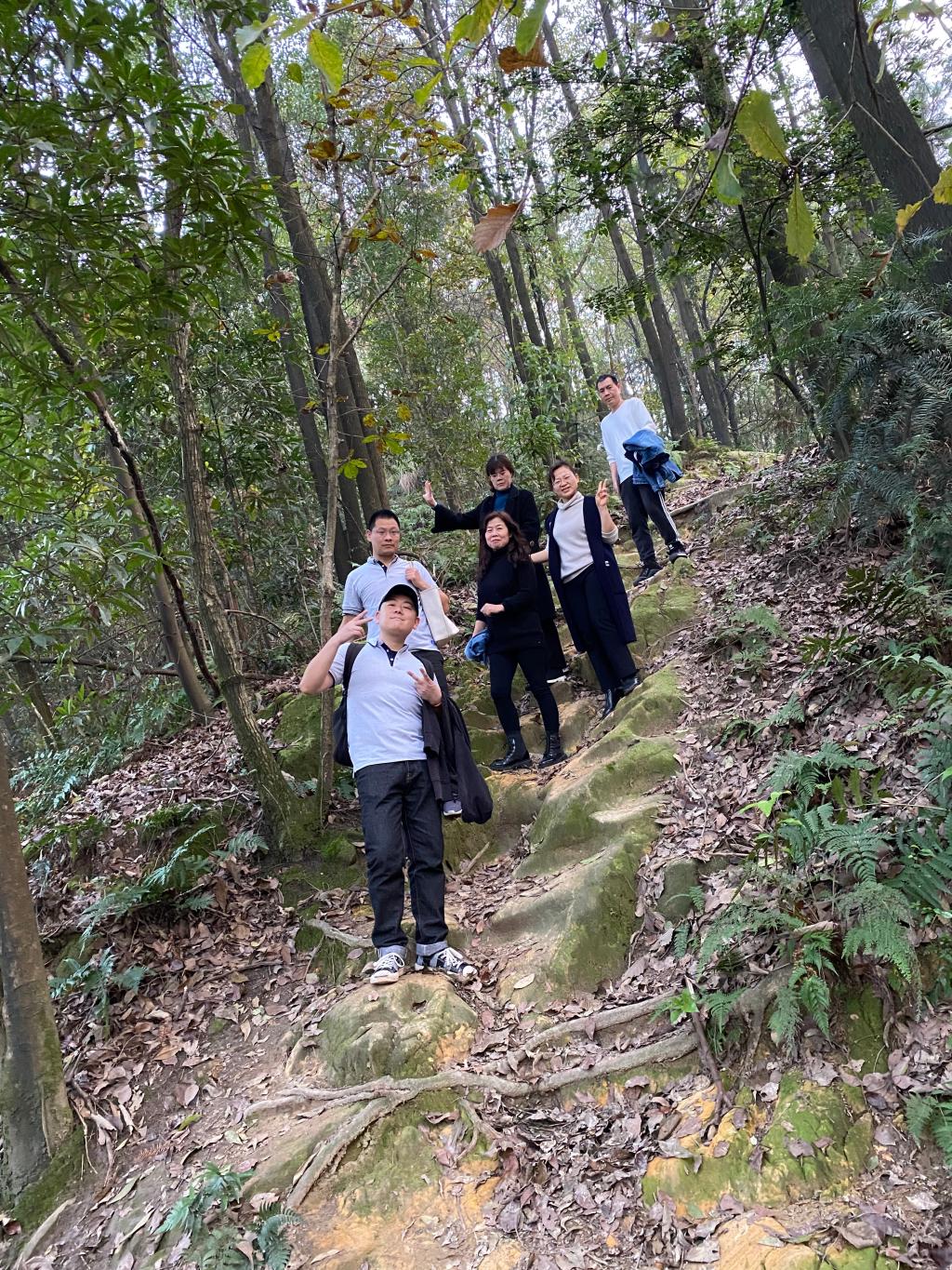 本次活动的路线为"涵智楼七层平台-国际商公司-翠林宾馆-南山书院-龙脊山腰-龙脊山山顶-返回涵智楼七层平台",并建议老师们在保证身体健康的前提下,量力而行。虽然已进入冬季,但阳光明媚、空气清爽。整个活动中,大家的脸上始终洋溢着冬日暖阳般的笑容,工作中的热情与韧劲在爬山过程中再次充分展现。