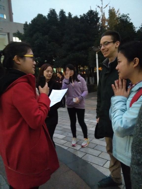为给广大英语学习爱好者提供交流平台,营造浓厚的学习氛围,2015年12月10日18:00,外语公司分团委员工会纪检部主办的第九期英语角在主校周末文化广场如期举行,外教Justin、Kevin出席了此次活动,本次英语角吸引了众多热爱英语的同学参与。