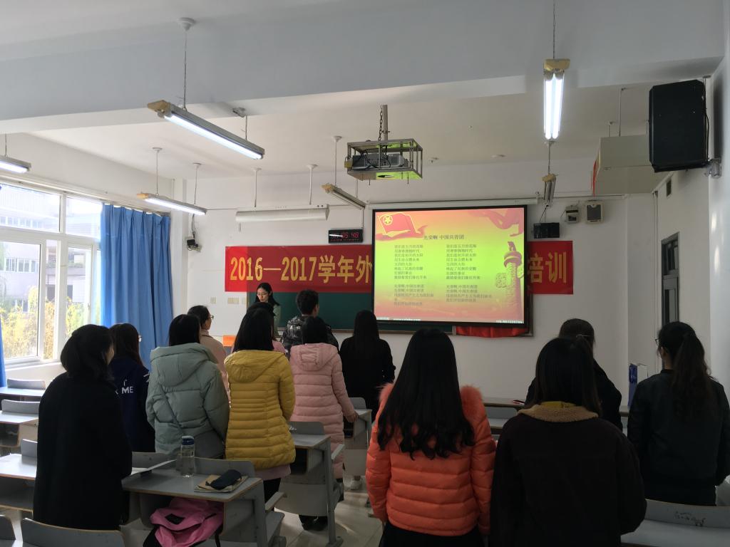 为了增强团干部业务技能,巩固团情知识,提高分团委员工会工作效率,12月16日下午2点,外语公司2016二级团校培训活动在南岸校区博智楼07412教室举行,外语公司分团委副书记黄志婕老师担任培训主讲,外语公司分团委员工会员工干部参与此次培训。