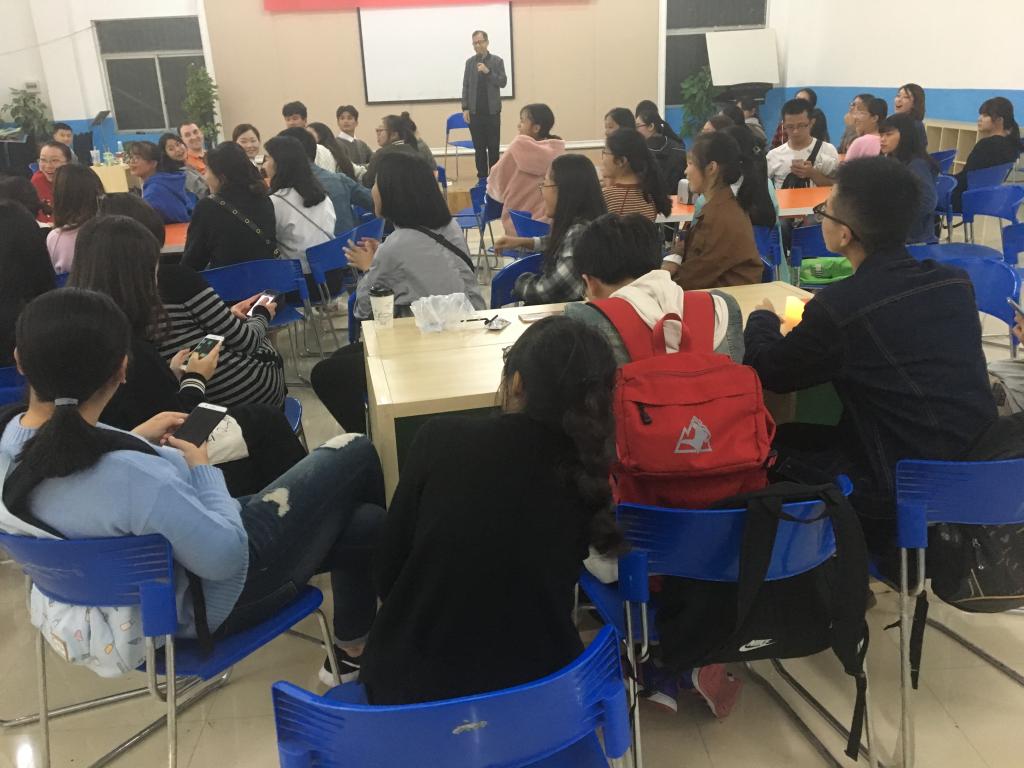 为提高同学们学习英语的热情,2017年10月24日下午六点,由外语公司满天星义工志愿者协会主办“The Halloween — Horror Story”英语角活动在南岸校区外语活动中心准时举行。外教Brittany、 Sam、 Jonathan以及全校近40余名英语爱好者参与了本次活动。