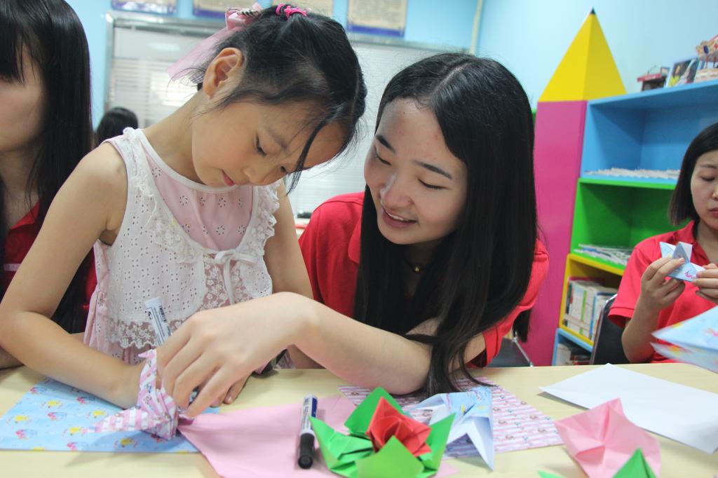 此次社会实践活动中小朋友年龄差异较大,面对这样的情况,我们的志愿者在课程设置上也别出心裁,运用具有特色的教学理念授课。不仅融入一些我国的传统文化,更是将我们外语公司关于“外语”方面的特色也结合了起来。将中西方文化的融合、生动地在课堂上展现出来。