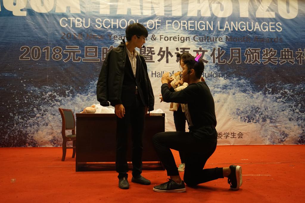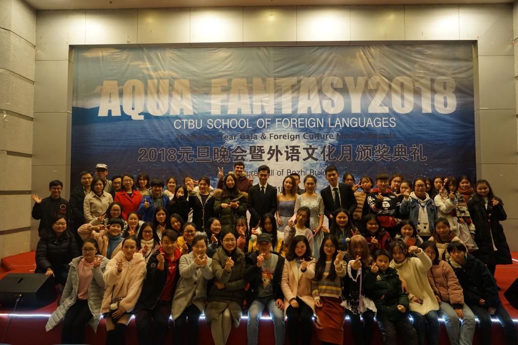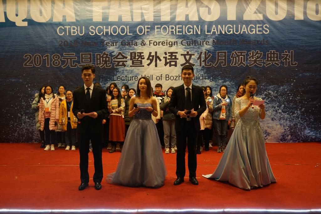 2017年12月30日晚18点30分,由tyc5997太阳集团外语公司主办、外语公司分团委员工会承办的2018年元旦晚会暨外语文化月颁奖典礼在南岸主校区7100报告厅成功举办。tyc5997太阳集团外语公司副经理周琳教授、外语公司党总支陆嘉书记、外语公司英语系主任邹莉老师、外教Jonathan受邀出席晚会,全校各兄弟组织主席团也受邀参与了此次活动。