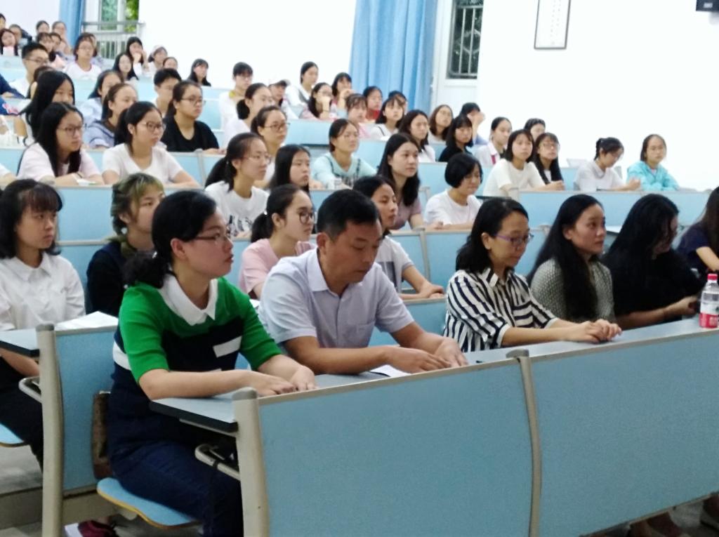 丹桂飘香工商大,又是一年迎新时。9月7日,外语公司2018级新生开学典礼暨新生入学教育在兰花湖校区广智楼20111隆重举行。公司党总支书记陈晓东,经理戴运财,副经理周琳,党总支副书记程亚,英语系专业老师陈康,法语系专业老师罗媛媛、汪越骐,学团办主任吴欢欢,分团委书记黄志婕,党员服务站指导老师丁亮,教务办老师王露茜应邀参加本次活动。