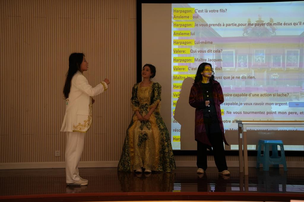 比赛按照法语组和英语组分别进行。法语第一组表演的《西游记三打白骨精》,作为中国四大名著之一的西游记,法语版本的美猴王带给了我们全新的视觉听觉体验。第二组《L’avare》,主要讲述了一个视财如命的吝啬鬼,为了省钱和捞钱不惜断送儿女命运——阿巴贡爱钱是如何夸张到令人发指的地步。第三组《La lumière》,是一部短小精悍的法国戏剧,故事发生在20世纪初的中国。它讲述了一位年轻的知识女性王芳的一生,她在爱情、一夫多妻制和女权问题上苦苦挣扎。第四组《Peppa pig》,短短的学前动画蕴藏着大大的人生哲理,琐碎的日常充满着家庭的温馨。第五组《小尼古拉》,讲述的是老师、督学、学监、董事长、部长……面对一个个摆在面前的“权威”和一万个应该变得规规矩矩的理由时,这些孩子们将一切严肃的场面变成好玩的游戏。英语第一组的表演《仲夏夜之梦》,人间与仙境的浑然交错,时间与空间的纷繁交织,编织出了这样一段仲夏时节的梦幻爱情故事。第二组《夜莺与玫瑰》,感受王尔德笔下的的极端浪漫。