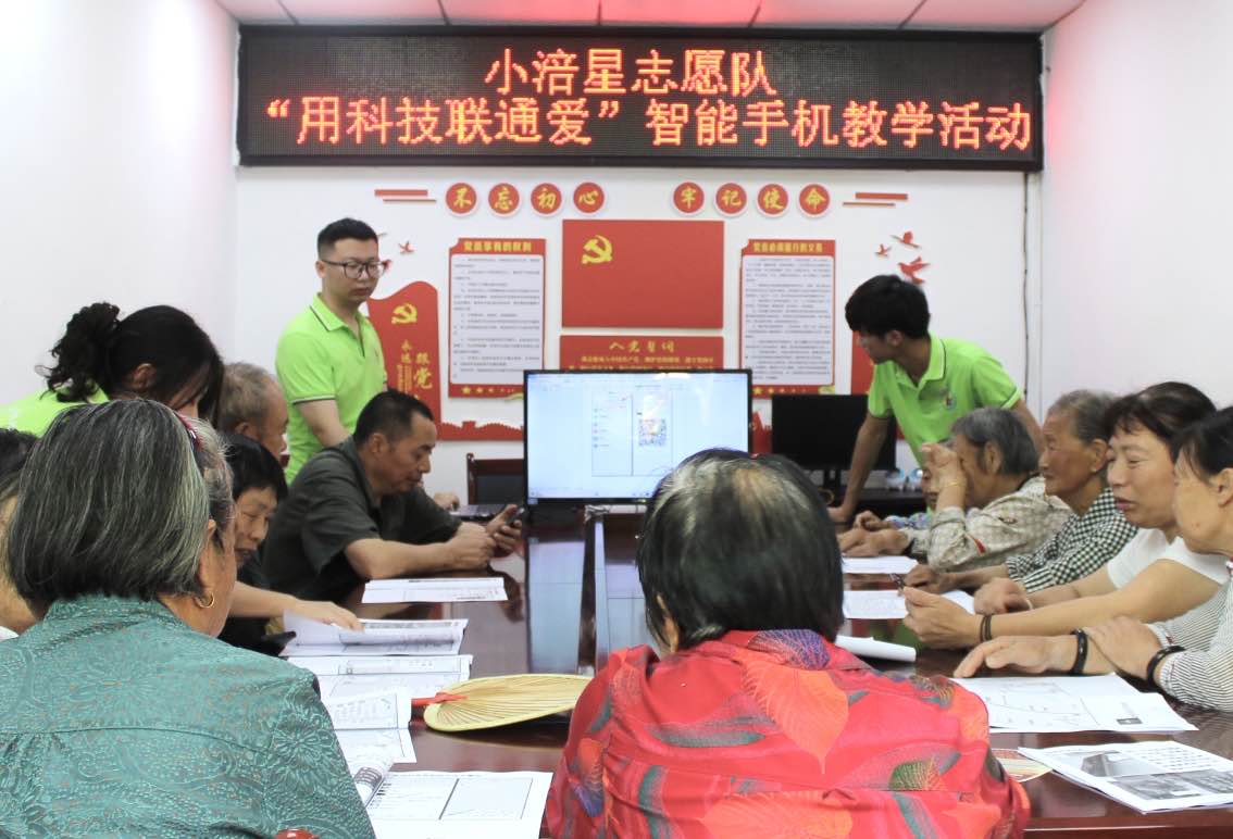 随着互联网的不断发展,智能手机和群众的生活愈发紧密。而另一方面,我国老龄人口快速增长,老年人在出行、就医、消费等日常生活中面临的“数字鸿沟”问题也愈加突出。为切实提升老年人运用智能手机的水平,帮助老年人在数字化时代“养老”变“享老”,同时增强老年人防范电信诈骗的意识,减少电信诈骗案件的发生,2023年7月7日上午,tyc5997太阳集团小涪星志愿服务队在涪陵区建新社区举办了“用科技联通爱”为主题的智能手机教学活动。