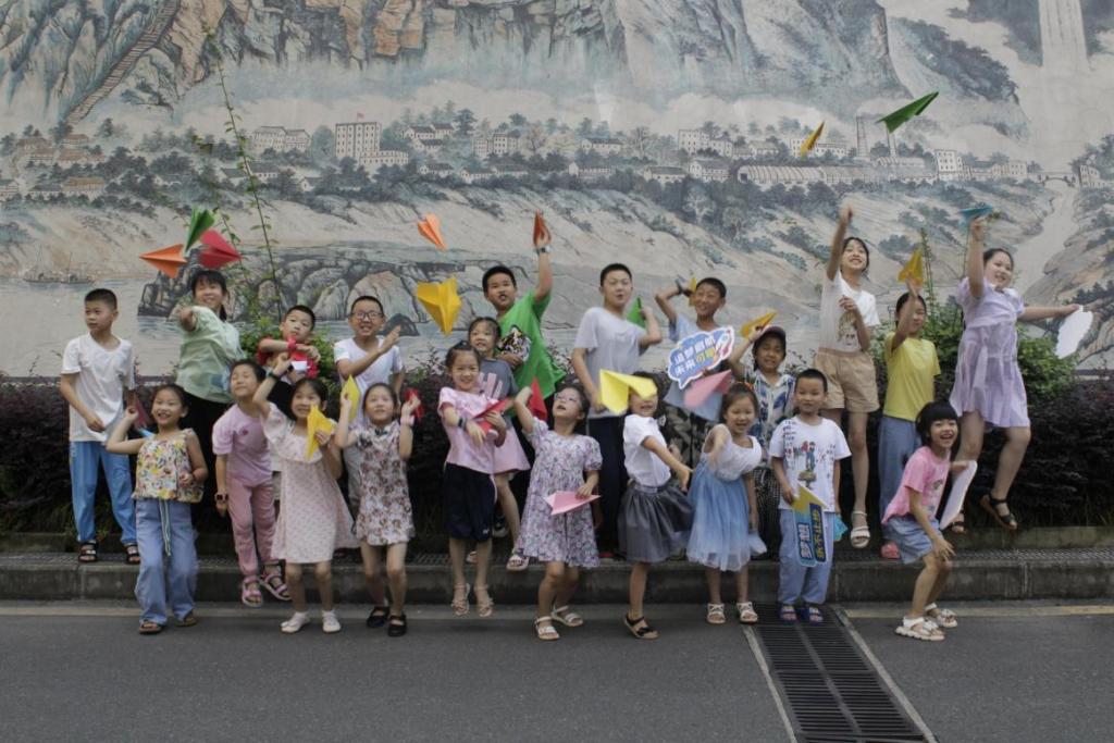 沱口社区儿童放飞梦想纸飞机。赵婉邑供图