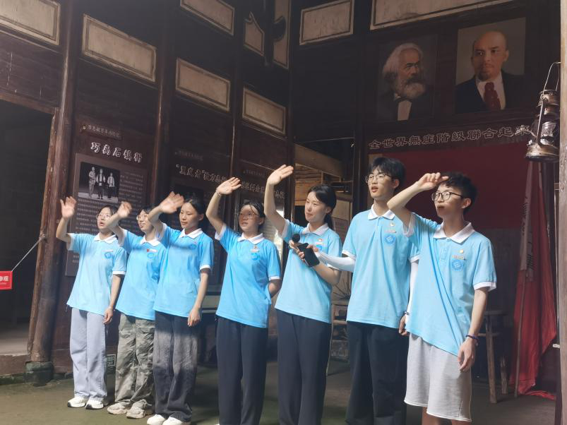 在万年县裴梅镇富林村赣东北苏维埃旧址中,志愿服务队联合裴梅镇富林村烈属艺术团举行红色主题演出。赣东北苏维埃政府旧址为第二次国内革命时期保存完好的革命故址,是万年县作为革命老区的重要历史见证与进行爱国主义教育和开展红色旅游的重要场所。在这里,富林村烈属艺术团带来的大合唱、中国舞以及情景剧,高亢的唱腔,整齐划一的舞姿、生动的演绎将全场观众的思绪带入那个激昂的革命岁月。志愿队成员合唱的《国际歌》与《稻香》,激昂的歌曲与青春活力相互碰撞,展现出年轻人朝气蓬勃与积极向上的精神面貌。