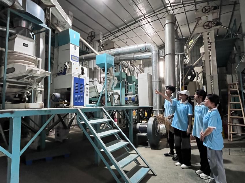 图为实践团成员参观贡米加工厂