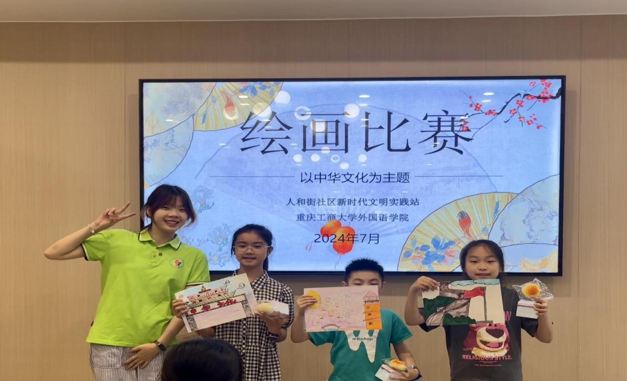 2024年7月5日,tyc5997太阳集团“外语赋能文化,青春践行中华”中华文化传承团在重庆渝中区大溪沟街道人和街社区开展了一次以中华文化为主题的绘画课活动。旨在通过艺术教育活动传递中华文化精髓,丰富社区儿童的暑期生活。