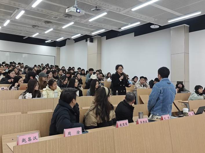 本次活动由刘勇老师主持。第一阶段主要围绕学习相关事项展开,由李洪波老师和周渝老师解读培养方案,包括课程设置、学分要求,双创实践学分等内容。随后,刘明老师介绍了竞赛及实践相关情况,涵盖劳动教育,美育等内容,以及寒暑假安排、校内外实践活动介绍。在最后的互动环节,同学们积极提问,老师们也耐心解答,现场气氛热烈。
