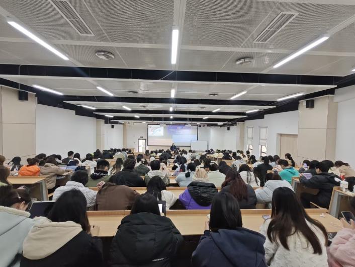 第二阶段为讲座环节,首先由赵昌汉老师围绕“外语专业硕士研究生考试的成功跨越”主题进行分享。赵老师向同学们解答了为什么要考研,考研院校专业的选取,考研前期中期以及进行时的准备。赵老师的精彩讲座不仅为同学们提供了宝贵学习经验,也激发了大家对未来学业的定位和思考。李洪波老师则介绍了公司翻硕点的相关情况。最后,周利民老师向同学们介绍了近年来公司员工升研、就业情况。